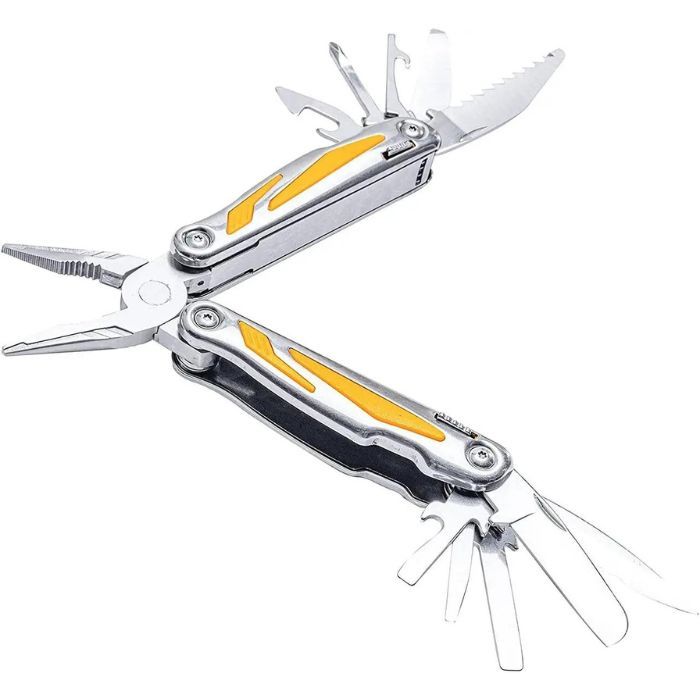 Мультитул 15 в 1 INGCO - це кишеньковий інструмент з нагоди повсякденного застосування. Цей мультитул містить 15 інструментів, що робить його універсальним і незамінним допоміжним знаряддям. В комплекті з мультитулом є довгогубці, плоскогубці, кусачки, ніж, викрутка плоска мала, відкривачка для пляшок та багато інших інструментів для виконання різноманітних задач. Ручка мультитулу виготовлена з нержавіючої сталі з накладкою з гуми, що забезпечує зручність у використанні. Цей мультитул відмінно підходить для будь-яких домашніх робіт, походів, риболовлі та інших ситуацій, де потрібно мати під рукою різні інструменти. Він стане незамінним помічником у вашій кишені або на ключах.