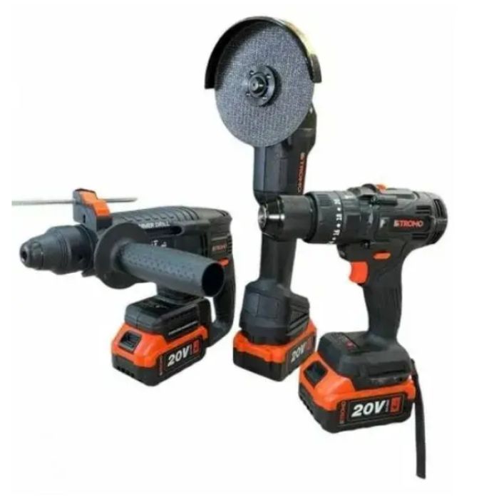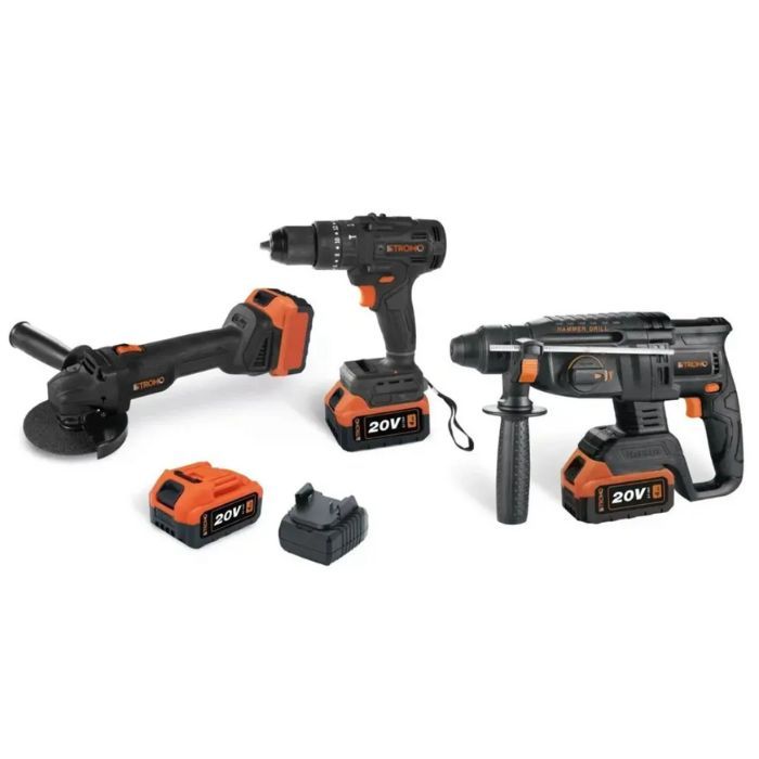 Набір акумуляторного інструменту STROMO РА210SET – універсальне рішення для будівельних, ремонтних і монтажних робіт. Комплект містить три основні інструменти: кутову шліфувальну машину (болгарку), перфоратор і шуруповерт, що робить його ідеальним як для професійного, так і для побутового використання. У комплекті передбачено три потужні акумулятори (20 В, 4 А/год) та два зарядні пристрої, що забезпечує безперервну роботу без затримок на підзарядку.