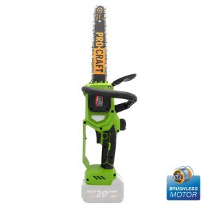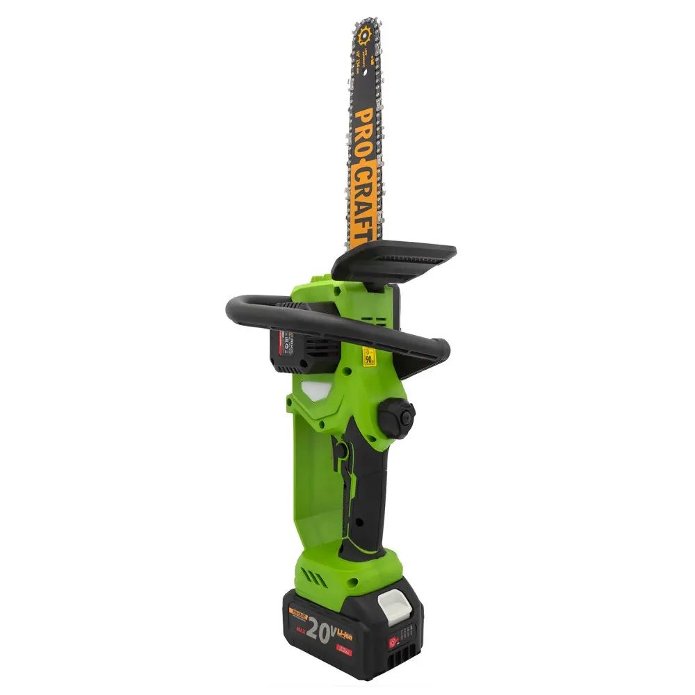 ProCraft PKA34 — це компактна ланцюгова пила з безщітковим двигуном, призначена для обрізки дерев, розпилювання деревини та садових робіт. Працює від акумулятора 20 В, що забезпечує повну автономність без прив’язки до мережі.
