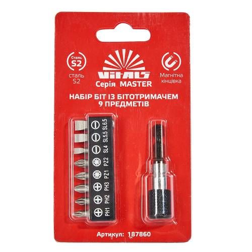 Набір біт з тримачем 9 предметів Vitals Master використовується для виконання різних завдань вдома, в гаражі або на роботі. З його допомогою ви зможете зручно й ефективно здійснювати ремонтні роботи, складання меблів, встановлення різних фурнітури та багато іншого. Більше не потрібно шукати різні біти - цей набір містить все необхідне для вашої роботи.