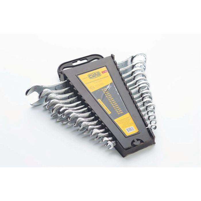 Набір ключів рожково-накидних стандарт 6-22мм (15шт) СИЛА є значним допоміжним інструментом для різних ремонтних і монтажних робіт. Виготовлений з високоякісної хром-ванадієвої сталі, цей набір ключів є надійним і довговічним. Завдяки своїй компактності, він зручно зберігається і може бути легко транспортований. Набір містить ключі прямої форми з двосторонніми з'єднаннями, що дозволяють збільшити діапазон робочого розміру до 6-19 мм і 22 мм. Цей набір ключів стане незамінним помічником для будь-якого професіонала або любителя, зайнятого ремонтом і монтажем.
