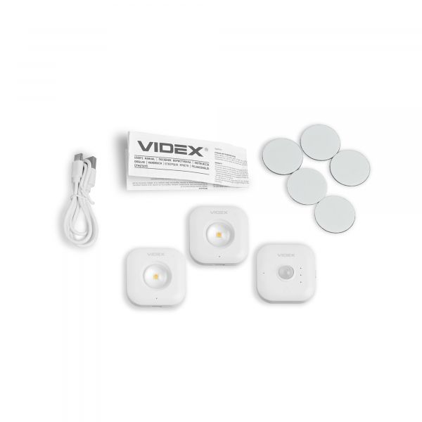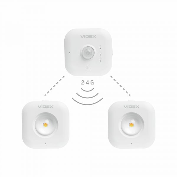 Набір LED Світильників акумуляторних з датчиком руху VIDEX VL-NL075-21 включає два акумуляторні світлодіодні нічники та інфрачервоний датчик руху, що використовує бездротову радіо технологію 2.4