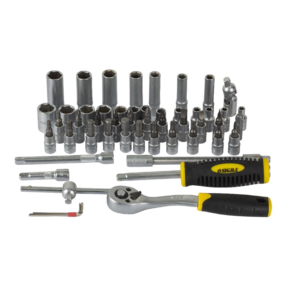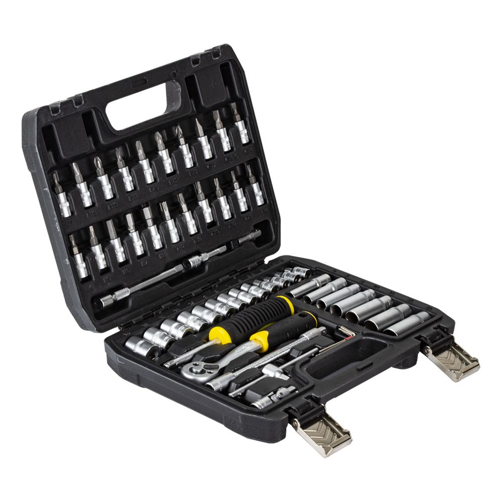 Набір торцевих насадок і біт SIGMA 1/4" 53 шт призначений для роботи з різьбовими з’єднаннями під час ремонту та обслуговування автомобілів, а також для слюсарних і столярних робіт. Усі елементи виготовлені з хромванадієвої сталі з матовим покриттям, а інструмент зручно зберігається в ударостійкому пластиковому кейсі з замками та металевими петлями. Підходить як для професійного, так і для побутового використання.