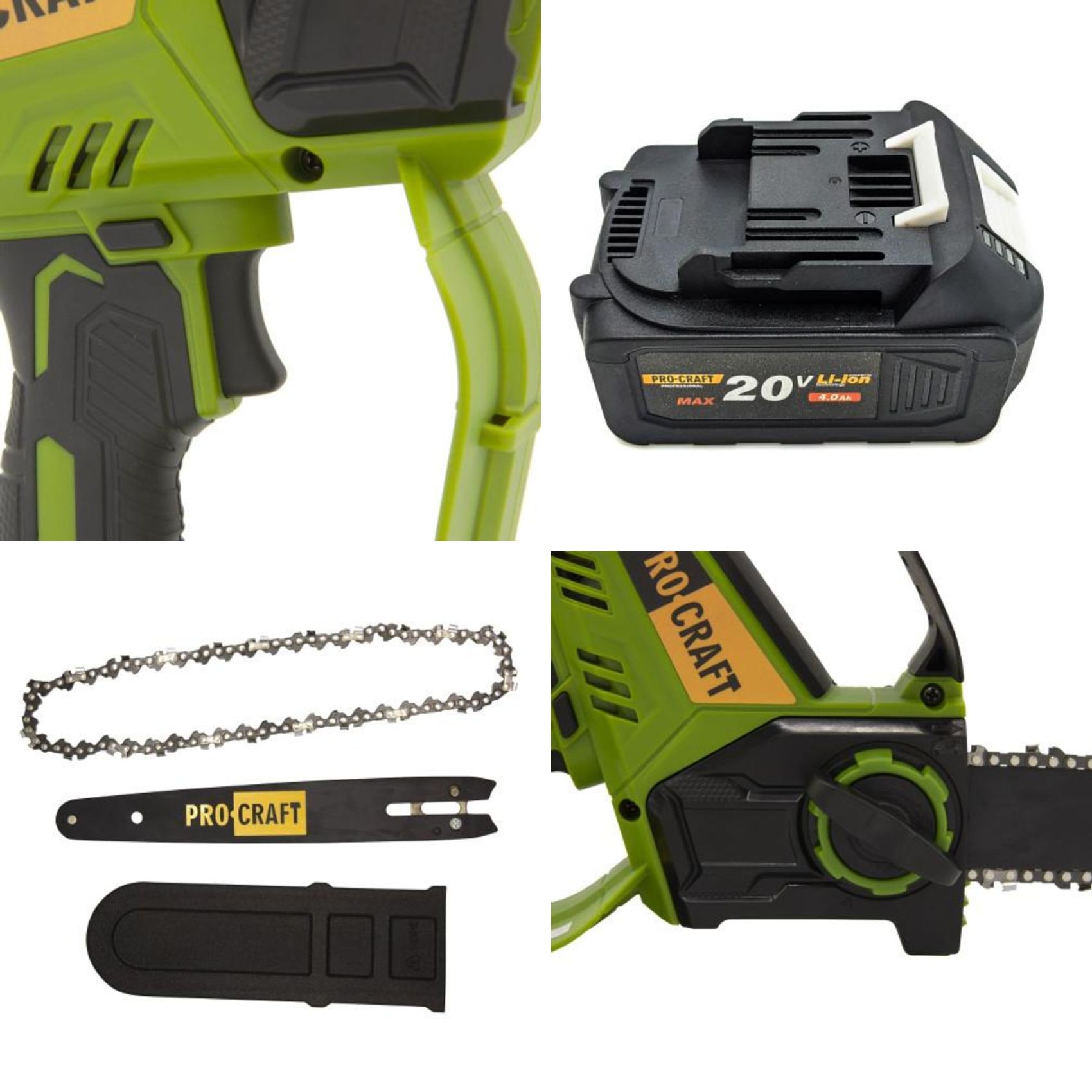 Набір Пила ланцюгова акумуляторна PRO-CRAFT PKA30/Батарея 20/4UNIVERSAL/Зарядний пристрій 20/1/Олива 1л підходить для використання в господарстві, лісорозтинних роботах, будівництві та для особистого використання. Ідеально підходить для обробки деревини, розпилу пнів, підготовки дров та виготовлення дерев'яних конструкцій.