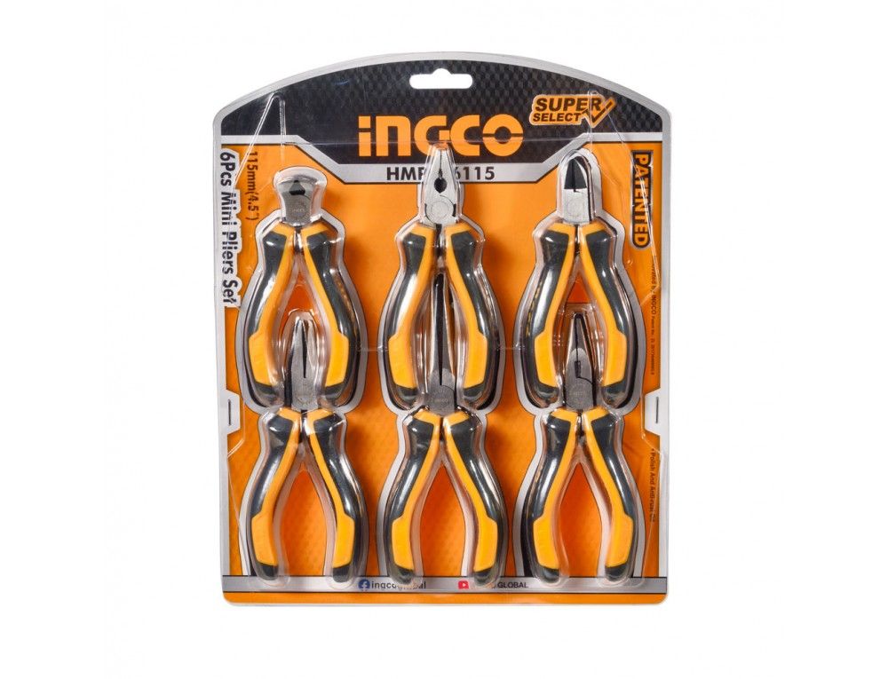 Набір шарнірно-губцевого інструменту міні 6 предметів Super Select INGCO — це комплект ручного інструменту для монтажних і слюсарних робіт (утримання і фіксація кріплення, вигинання і різання дроту/проводів). Інструменти оснащені зручними двокомпонентними ручками. У набір входить: 1. Плоскогубці комбіновані, 115 мм 2. Бокорізи, 115 мм 3. Кусачки торцеві, 115 мм 4. Довгогубці, 115 мм 5. Пасатижі, 115 мм 6. Гострогубці, 115 мм. Кількість позицій: 6. Пакування: слайдерна картка. Бренд: Ingco.