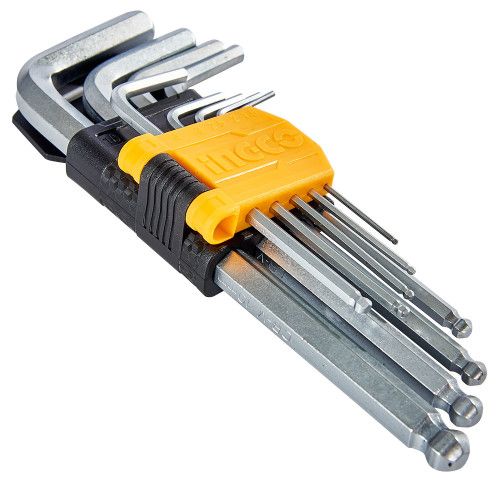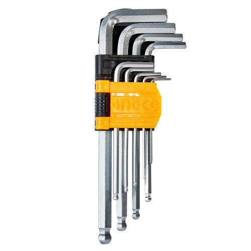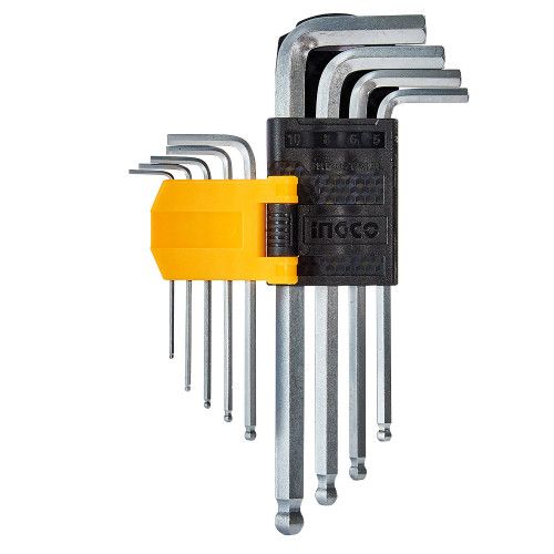 Набір шестигранних ключів із кулею 9 шт. 1,5–10 мм INGCO має декілька переваг, які роблять його відмінним вибором. Перш за все, кожен ключ виготовлений з високоякісного матеріалу CrV, що гарантує його міцність та довговічність. Крім того, вони мають термообробку та хромоване покриття, що забезпечує стійкість до корозії та додає зносостійкості. Наявність кулі на кінці ключів дозволяє легко та зручно виконувати роботу у важкодоступних місцях. Крім того, цей набір ключів має зручну упаковку для організації та зберігання.