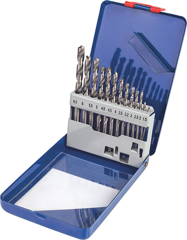 Набір свердл по металу Р6М5 білих 1,0-13,0мм 25шт (мет. коробка) - це високоякісний набір свердел, призначений для свердління отворів в металі. Кожне свердло має діаметр від 1,0 до 13,0 мм і виконане з міцної сталі Р6М5. Тип хвостовика - циліндричний. Свердло має гвинтову форму, що дозволяє безперешкодно вести свердління і забезпечує високу точність отворів. Набір поставляється у металевій коробці, що забезпечує зручне зберігання і транспортування.