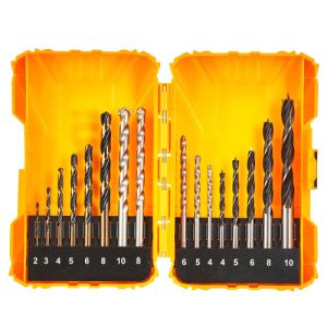 Цей набір свердел призначений для роботи з металом, бетоном та деревом. Він містить 16 штук свердел, які дозволяють проводити різні види свердління. Свердла по металу використовуються для свердління отворів в металевих поверхнях, свердла по бетону - для свердління отворів в бетонних поверхнях, а свердла по дереву - для свердління отворів в дерев'яних поверхнях. Цей набір є відмінним варіантом для будівельних та ремонтних робіт.