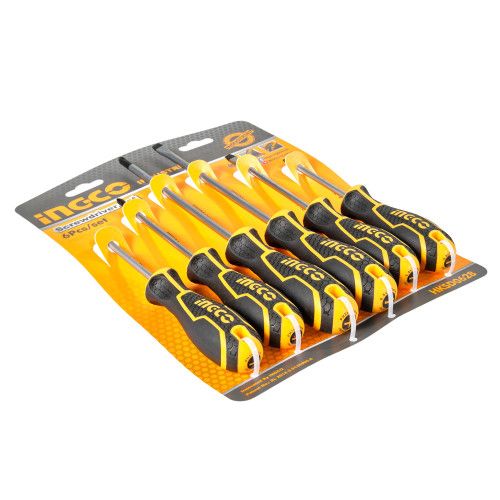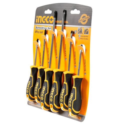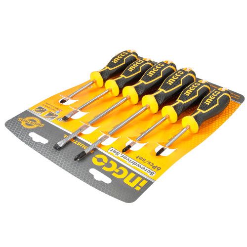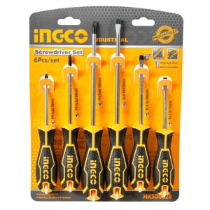 Набір викруток 6 шт. INGCO INDUSTRIAL призначений для використання в різних сферах, таких як будівництво, ремонт, автосервіс та домашнє використання. Використовуйте цей набір для затягування або відкручування гвинтів та інших кріпильних елементів.