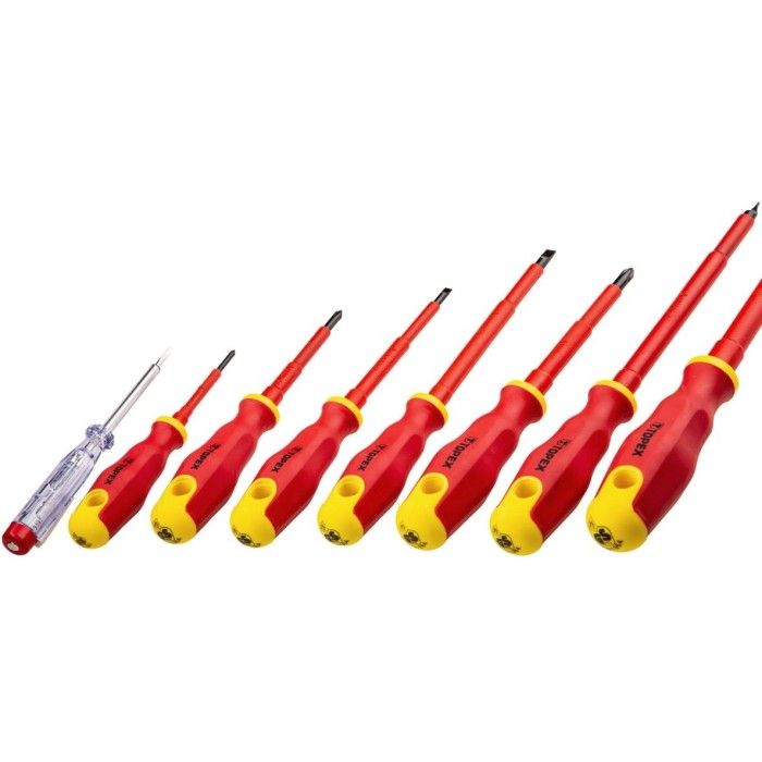 Набір викруток Topex - це незамінний інструмент для будь-якого майстра або просто домашнього користувача. Цей набір містить 8 високоякісних викруток з ізольованими ручками, що дозволяє працювати з електричними проводами під напругою до 1000 Вольт. Кожна викрутка має спеціальне покриття, яке запобігає ковзанню і забезпечує зручний захват. Довга сталева штуцерна частина дозволяє легко дістати важкодоступні місця. Купуючи набір викруток Topex, ви отримуєте надійний і зручний інструмент, який допоможе вам здійснювати ремонт або будівельні роботи швидко і безпечно.