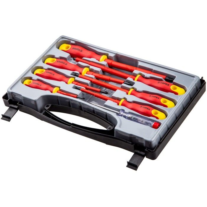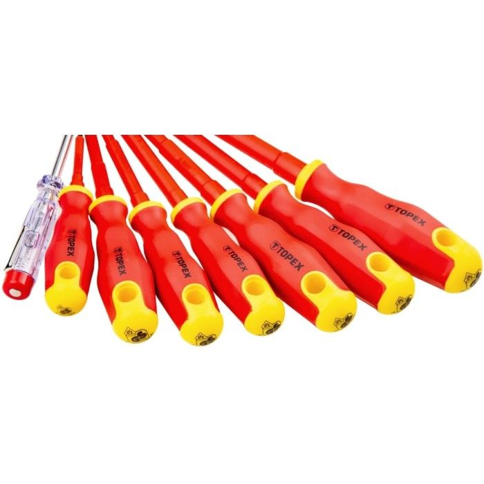 Набір викруток Topex ідеально підходить для використання в електричних роботах, в ремонтних роботах вдома або на виробництві. Завдяки високоякісним матеріалам і зручним ручкам, цей набір забезпечить вам безпеку і комфорт під час роботи.