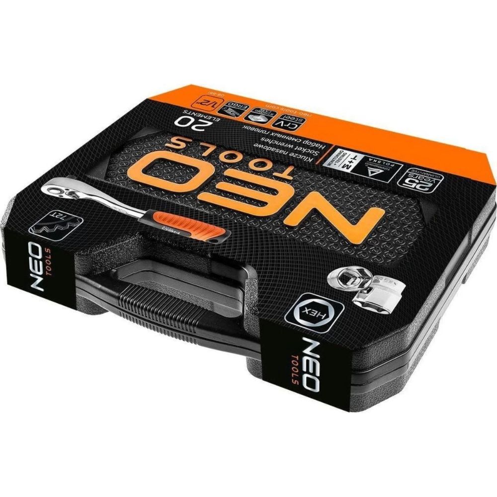 Набір змінних головок NEO Tools (08-661) на 20 предметів з приводом 1/2" виготовлений із міцної хром-ванадієвої сталі CrV. Оснащений тріскачкою на 72 зубці та додатковими аксесуарами, стане надійним інструментом для професійних і побутових робіт із різьбовими з’єднаннями.
