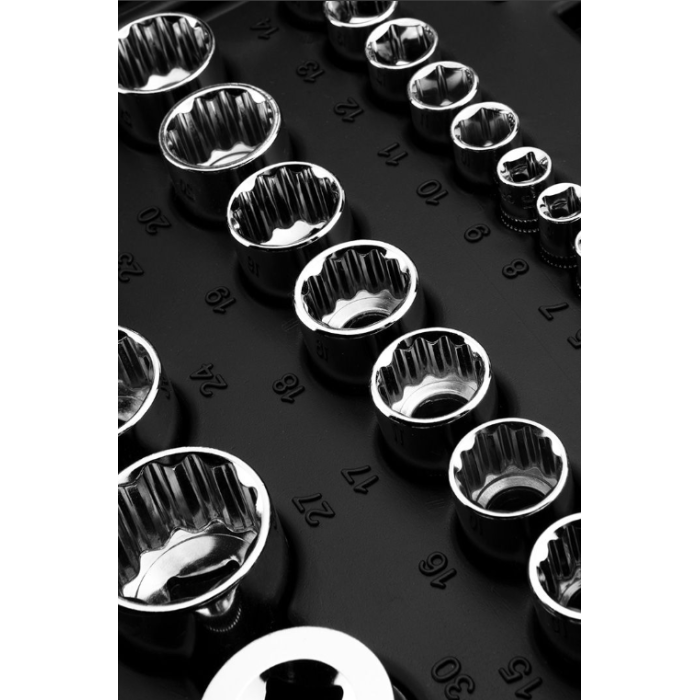Даний набір змінних головок також має зручний футляр для зберігання, що дозволить вам легко і організовано тримати всі елементи набору. Крім того, набір компактний і легкий, що робить його ідеальним для перенесення.