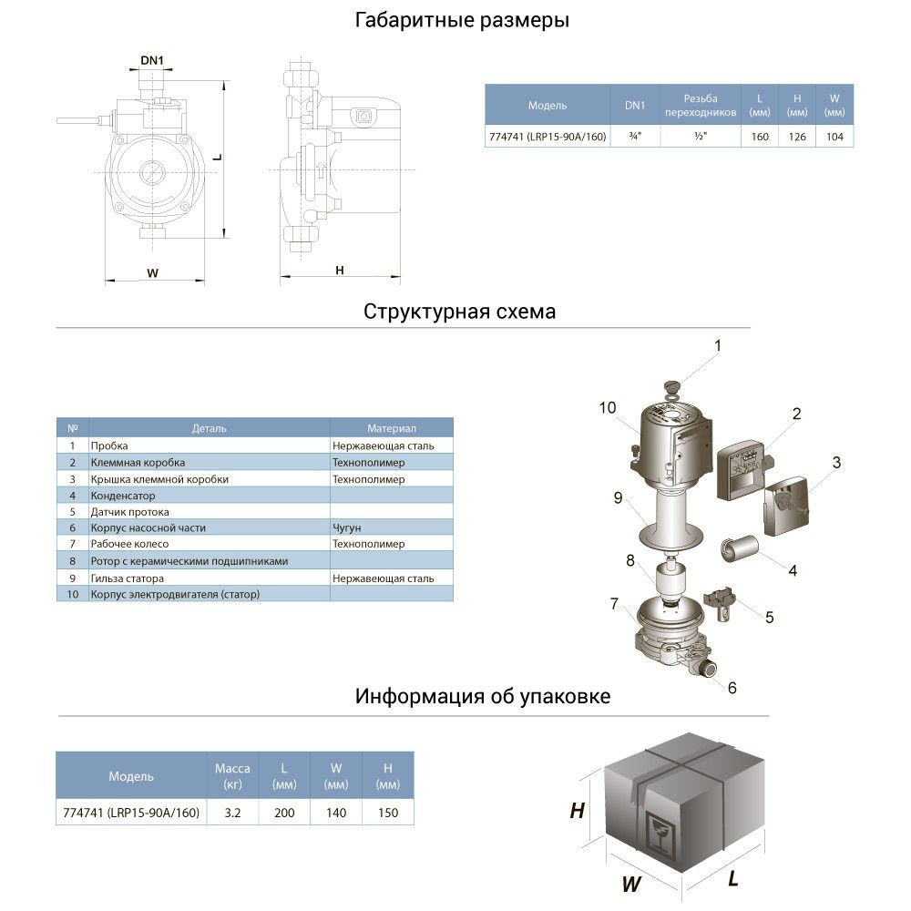 Насос для підвищення тиску 123Вт Hmax 9м Qmax 25л/хв " 160мм+гайки " LEO 3.0 LRP15-90A/160 (774741)
