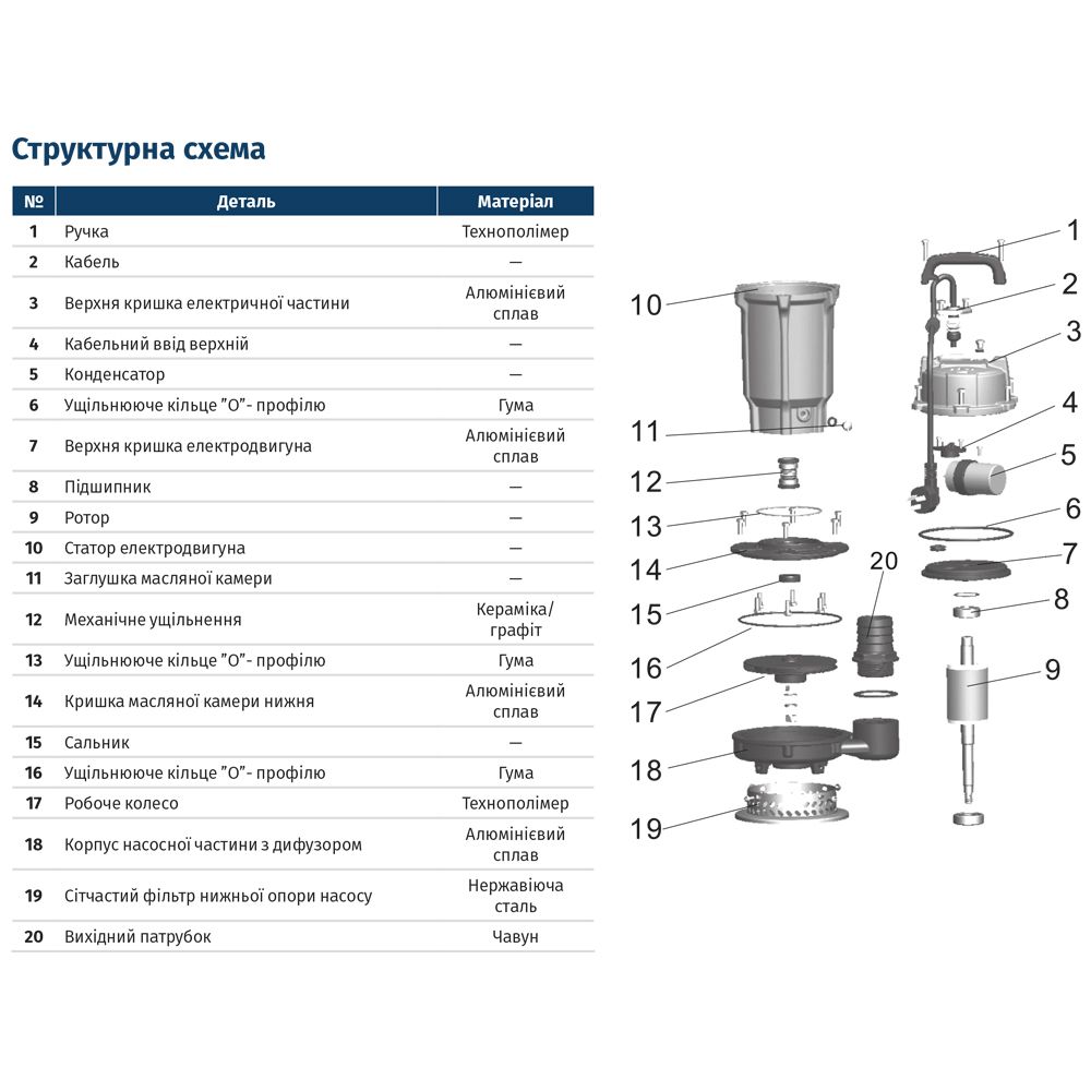 Насос дренажний 0.37кВт Hmax 15м Qmax 140л/хв без поплавка WETRON (773190)