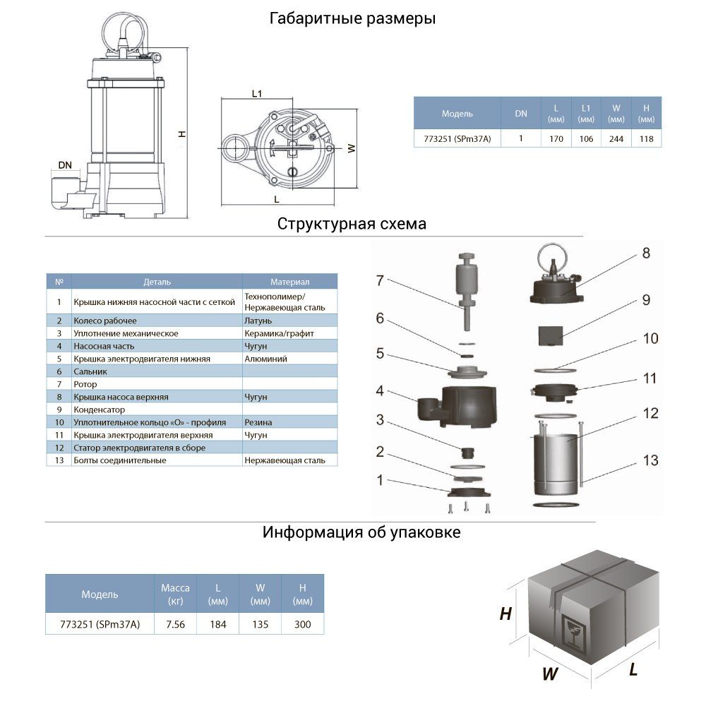 Насос дренажний садовий 0.37кВт Hmax 42м Qmax 35л/хв LEO SPm37A (773251)