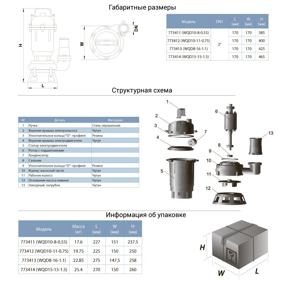 Насос каналізаційний 1.5кВт Hmax 23м Qmax 375л/хв AQUATICA (773414)
