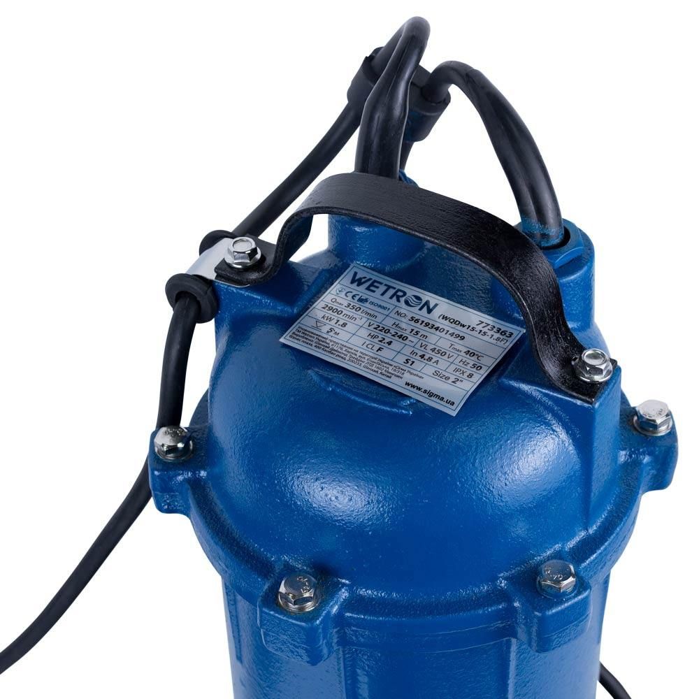 Насос каналізаційний 1.8кВт Hmax 15м Qmax 350л/хв WETRON WQDw15-15-1.8F (773363)