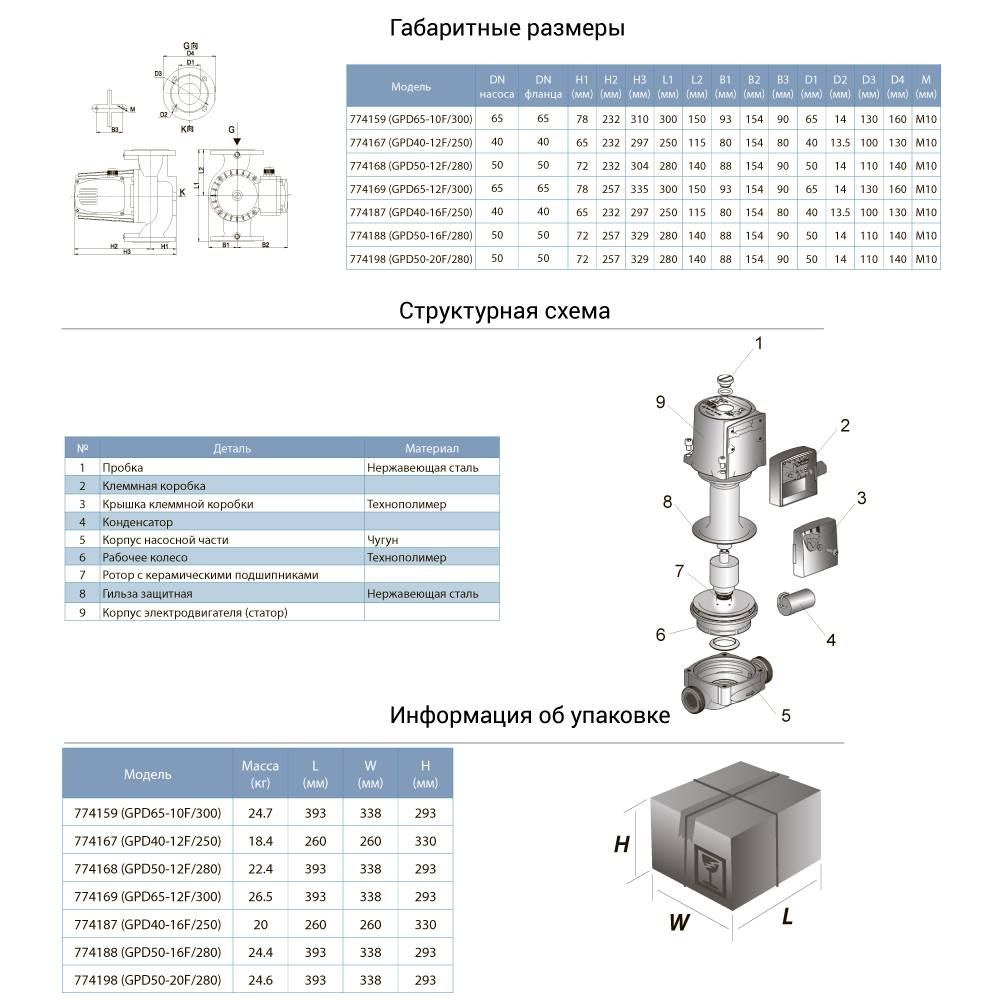 Насос циркуляційний фланцевий 1.0кВт Hmax 12м Qmax 300л/хв DN50 280мм + приєднувальний фланець AQUATICA (774168)