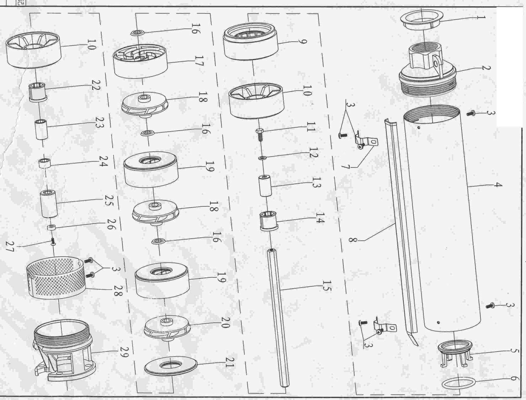 Насос відцентровий свердловинний 0.75кВт H 44 (30) м Q 180 (133) л / хв 102мм DONGYIN 4SDm8/7 (777151)