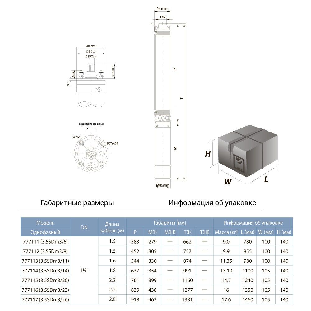 Насос відцентровий свердловинний 1.1кВт H 112 (89) м Q 80 (50) л / хв 94мм AQUATICA (DONGYIN) (777115)