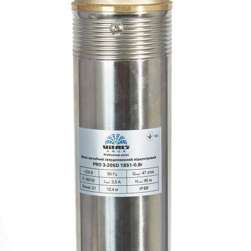 Насос занурювальний свердловинний відцентровий стійкий до піску Vitals Aqua PRO 3-20SD 1851-0.8r - це потужний насос, призначений для використання у сфері водопостачання. Він має напругу 230 В та споживає 800 Вт електроенергії. Завдяки своїй ступені захисту IP68, цей насос може ефективно працювати навіть у суворих умовах. Довжина кабелю становить 25 метрів, що дозволяє використовувати його на великій відстані від джерела живлення. Частота струму складає 50 Гц. Максимальна заглибна глибина насоса - 70 метрів. Завдяки цим характеристикам, Vitals Aqua PRO 3-20SD 1851-0.8r забезпечує надійну та ефективну роботу.