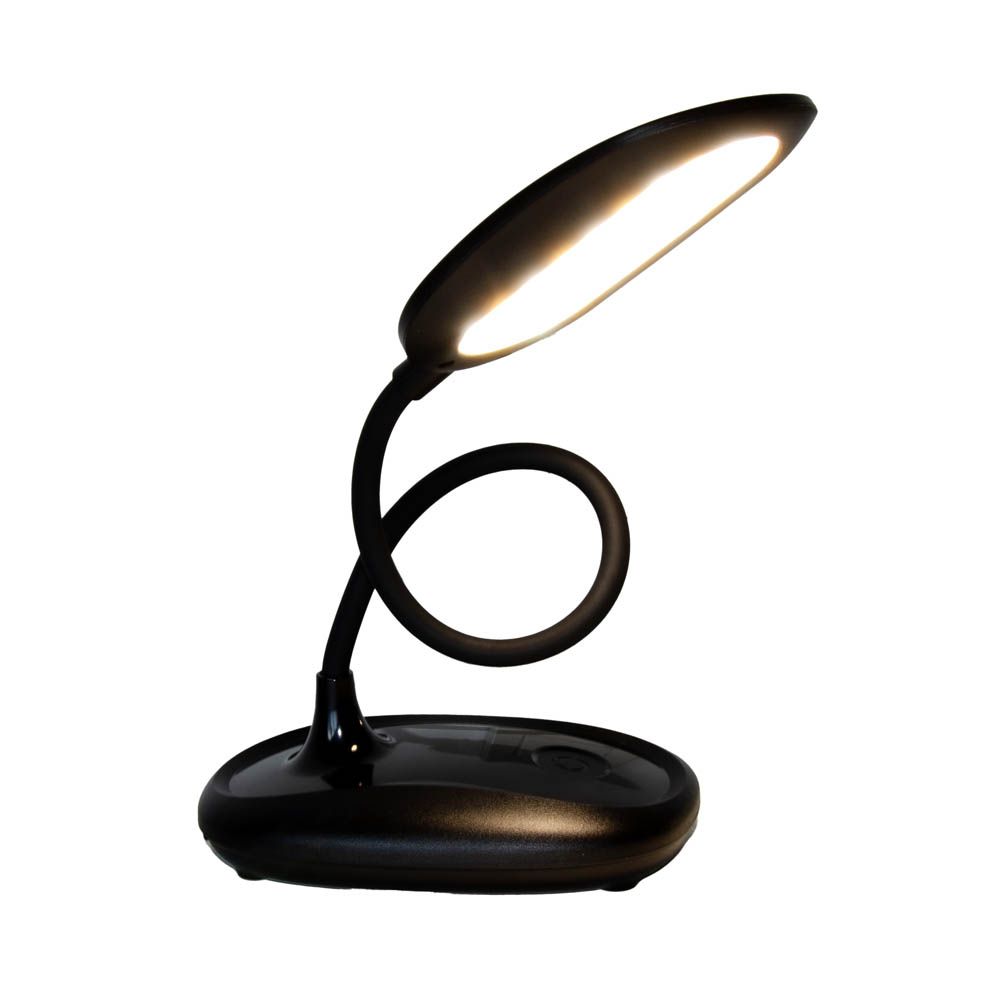 Гнучка ніжка дозволяє налаштовувати висоту та кут освітлення. Лампа легко адаптується під ваші завдання — від роботи до нічного читання.
