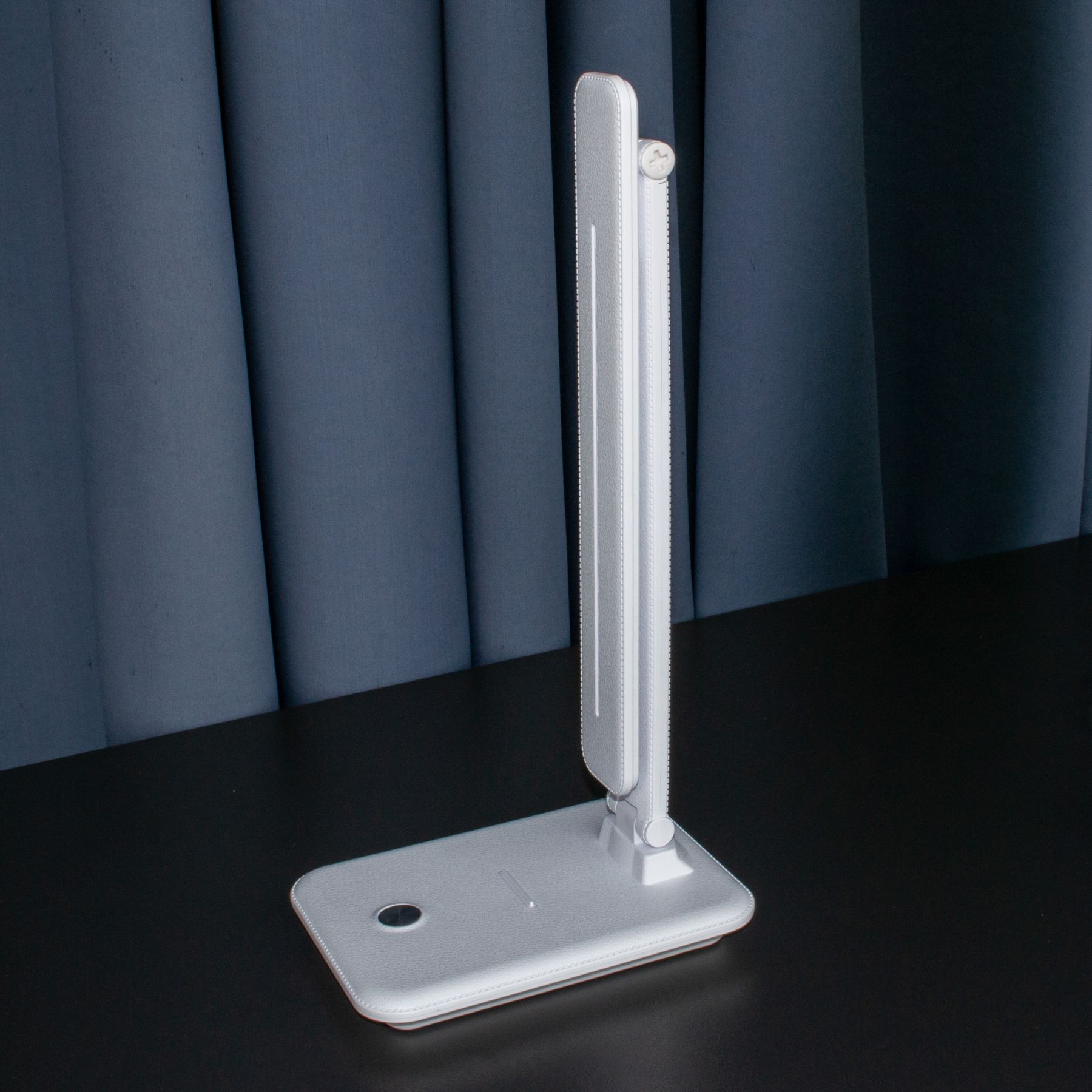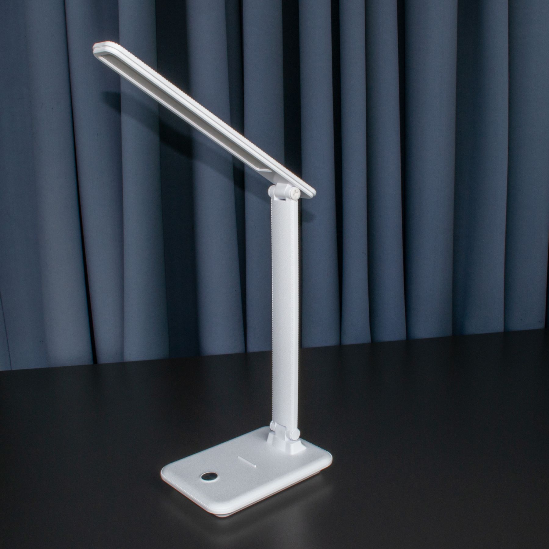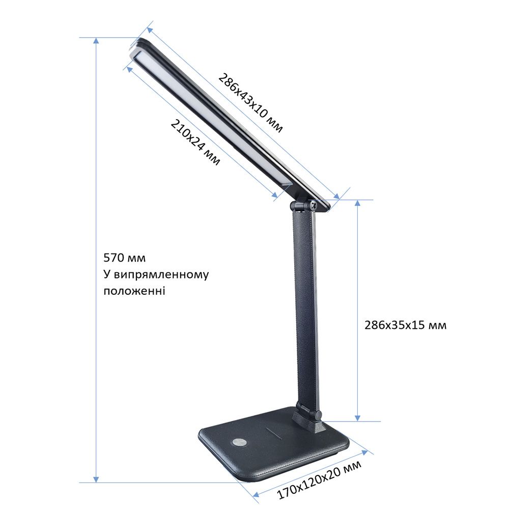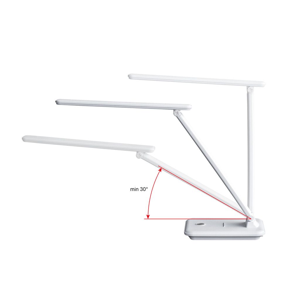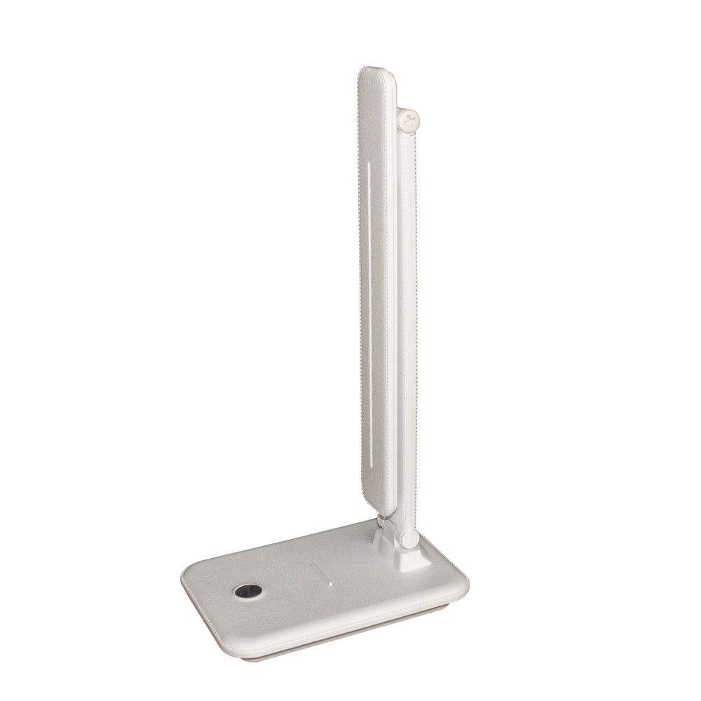 Дизайн LED лампи — її відмінна риса і головна фішка. Корпус виконаний під шкіру в чорному або білому кольорі. Сенсорна кнопка — під метал. Такий зовнішній вигляд лампи допоможе легко вписатися в будь-який інтер'єр приміщення: офісний кабінет, домашня кімната, ресепшн будь-якого закладу/установи і т.д. Упор на основі в ролі підставки для смартфона. Тепер жодне сповіщення не буде пропущено, а перегляд улюблених відеороликів на YouTube стане ще комфортнішим. Ззаду основи — червоний індикатор підключення до мережі. Три спектри освітлення під конкретний вид діяльності: • Холодний — для інтенсивної зосередженої роботи. Два ряди світлодіодів • Теплий — для читання і відпочинку. Один ряд світлодіодів • Денний — для роботи протягом дня. Три ряди світлодіодів Вбудований диммер дозволяє плавно регулювати яскравість освітлення: від 0,5 до 9,5 Вт. В комплекті кабель з блоком живлення на 1,5 м.