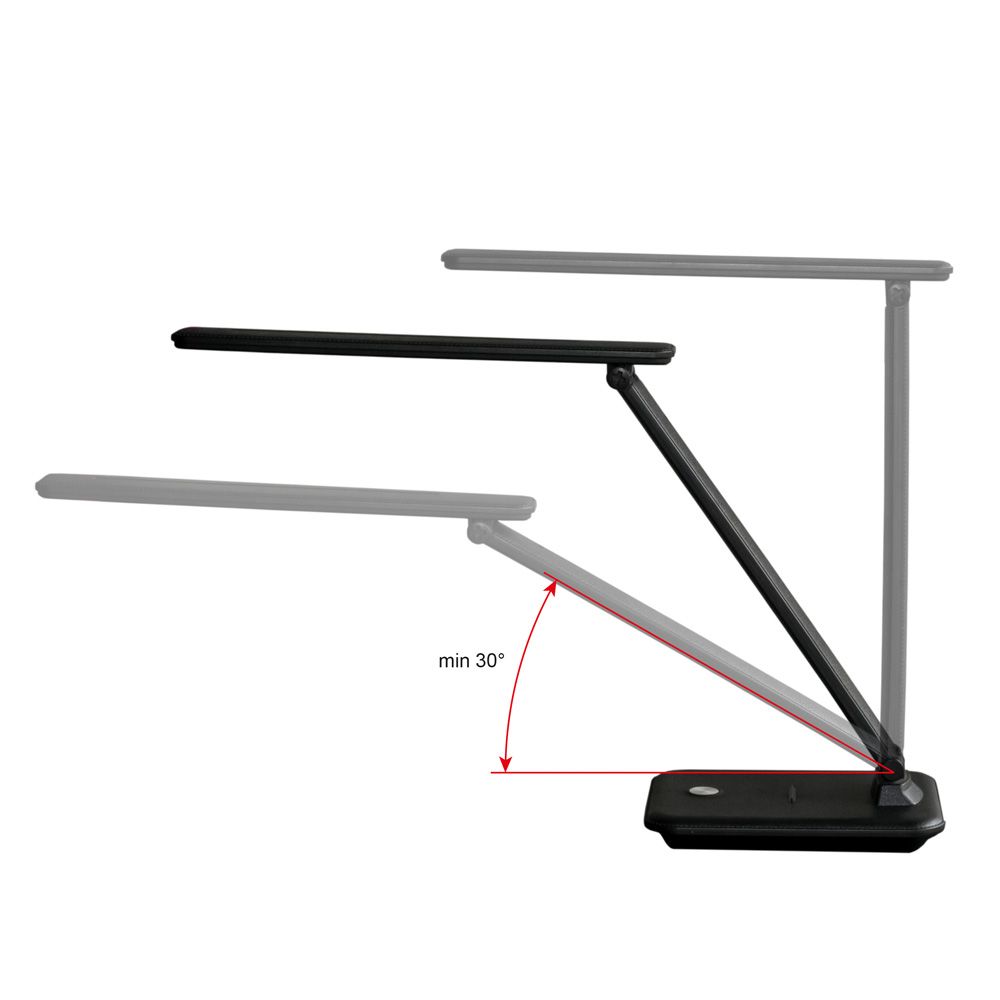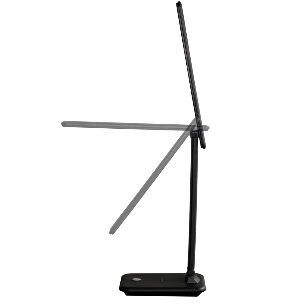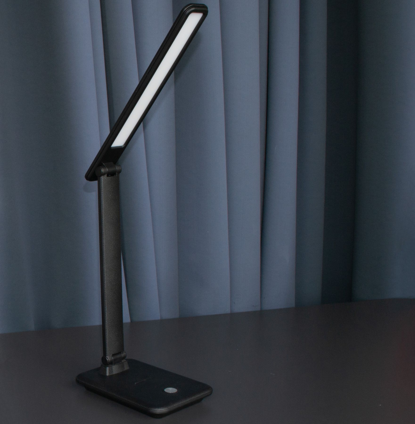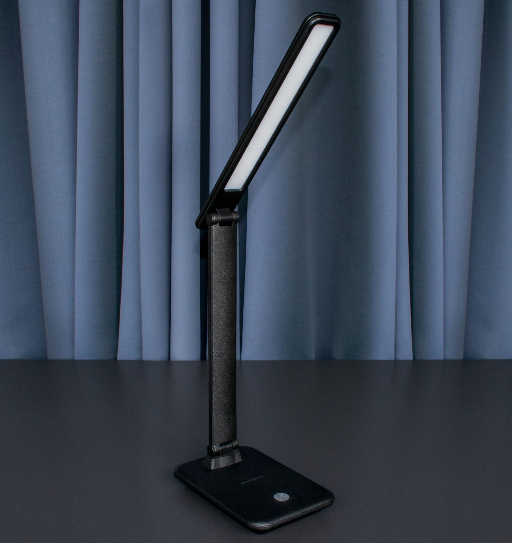 Дизайн LED лампи — її відмінна риса і головна фішка. Корпус виконаний під шкіру в чорному або білому кольорі. Сенсорна кнопка — під метал. Такий зовнішній вигляд лампи допоможе легко вписатися в будь-який інтер'єр приміщення: офісний кабінет, домашня кімната, ресепшн будь-якого закладу/установи тощо. Упор на основі в ролі підставки для смартфона. Тепер жодне сповіщення не буде пропущено, а перегляд улюблених відеороликів на YouTube стане ще комфортнішим. Ззаду основи — червоний індикатор підключення до мережі. Три спектри освітлення під конкретний вид діяльності: • Холодний — для інтенсивної зосередженої роботи. Два ряди світлодіодів • Теплий — для читання і відпочинку. Один ряд світлодіодів • Денний — для роботи протягом дня. Три ряди світлодіодів Вбудований диммер дозволяє плавно регулювати яскравість освітлення: від 0,5 до 9,5 Вт. В комплекті кабель з блоком живлення на 1,5 м.