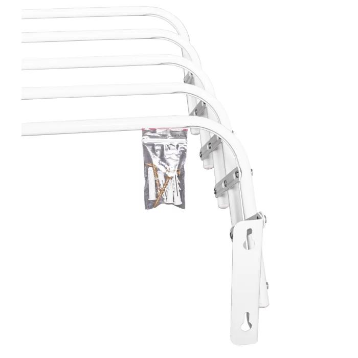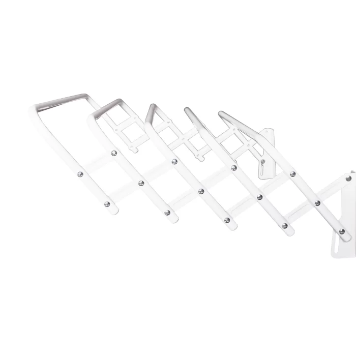 Сушарка для білизни TRIO 80 — це компактна та практична модель, що забезпечує економію простору, адже вона кріпиться на стіні. Водночас завдяки унікальній системі розсування основи, її робоча довжина складає 4 метри. На додачу, компактні розміри цієї сушарки у складеному вигляді дозволять з легкістю знайти місце для її зберігання. Товар відповідає умовам європейської сертифікації.