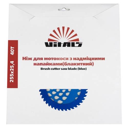 Ніж до мотокоси 40 зуб. (нерж.сталь) в уп. Синій має діаметр 255 мм і зроблений з нержавіючої сталі. Цей ніж є надійним і міцним, ідеально підходить для використання з мотокосами. Він забезпечує чисті і точні різи і дозволяє без зусиль обрізати траву, гілки і невеликі дерева. Нержавіюча сталь забезпечує високу стійкість до корозії і забруднень, що робить цей ніж довговічним і практичним. Завдяки своїй конструкції і якості матеріалу, цей ніж буде служити вам довгий час.