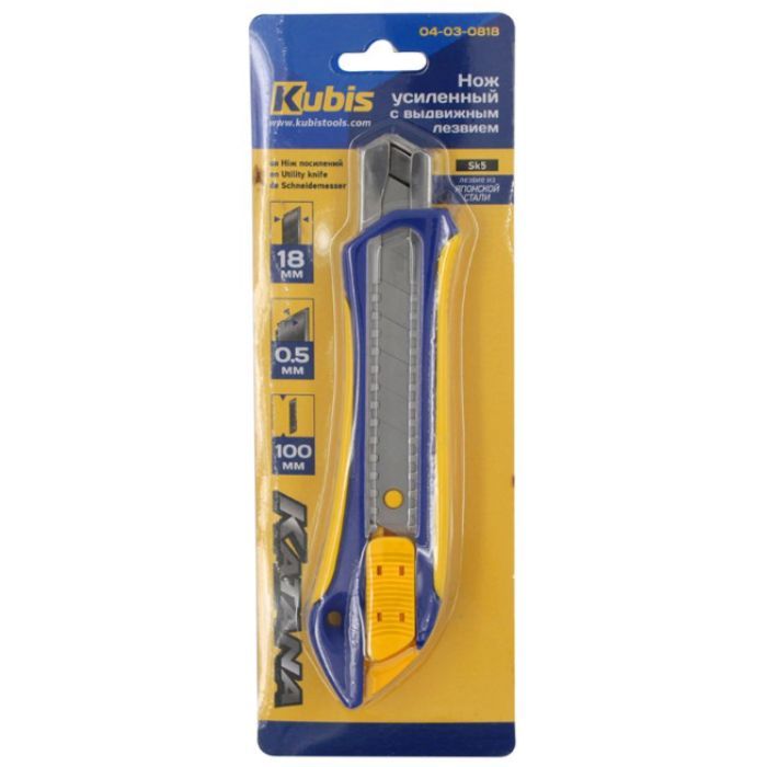 Основні переваги ножа SK5 18 мм KATANA:- Висувне лезо забезпечує зручну заміну леза і безпечне зберігання ножа.- матеріал ручки - пластик ABS з TPR покриттям з металевою напрямною, що забезпечує зручний і надійний захват.- Сегментоване лезо дозволяє заміняти лише пошкоджені частини, зберігаючи при цьому оригінальну гостроту різального елемента.- Відмінна якість сталі SK5 гарантує тривалу службу ножа і збереження його розрізної гостроти.- Максимальний розмір розкривання - 100 мм, що дозволяє зручно використовувати ніж для різних видів робіт.