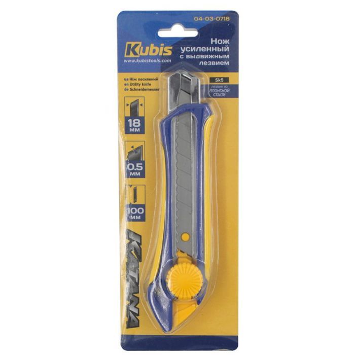 Ніж посилений з висувним лезом SK5 18 мм KATANA є універсальним інструментом з максимальним розміром розкривання 100 мм. Ширина леза складає 18 мм, а ручка виготовлена з ABS пластику з TPR покриттям і металевою напрямною. Лезо є сегментованим. У комплекті не міститься додаткових лез. Цей ніж має багато переваг, включаючи високу якість матеріалів та стійкість до корозії. Він призначений для широкого спектру застосувань і буде корисним як у домашніх умовах, так і в професійній сфері.
