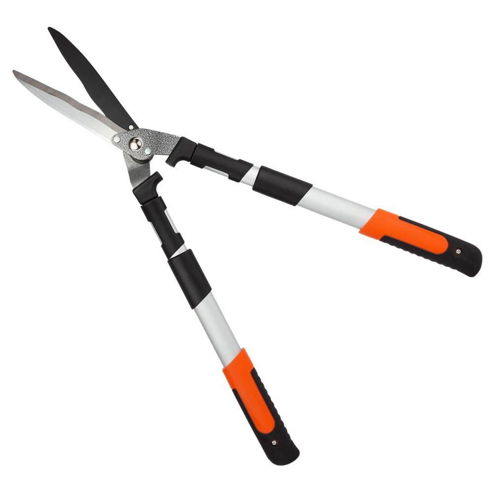 Телескопічні ножиці для кущів FLORA 5024414 призначені для обрізання квітів, підрізання чагарників та догляду за садовими рослинами. Інструмент оснащений алюмінієвими ручками, що забезпечують легкість та міцність конструкції, а телескопічна система дозволяє регулювати довжину ножиць від 711 до 833 мм, підбираючи оптимальний розмір для зручності роботи.