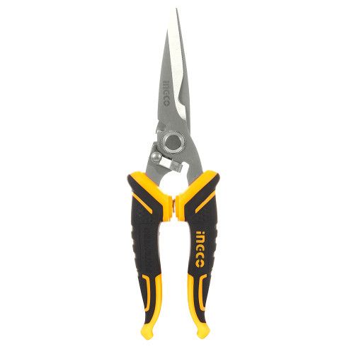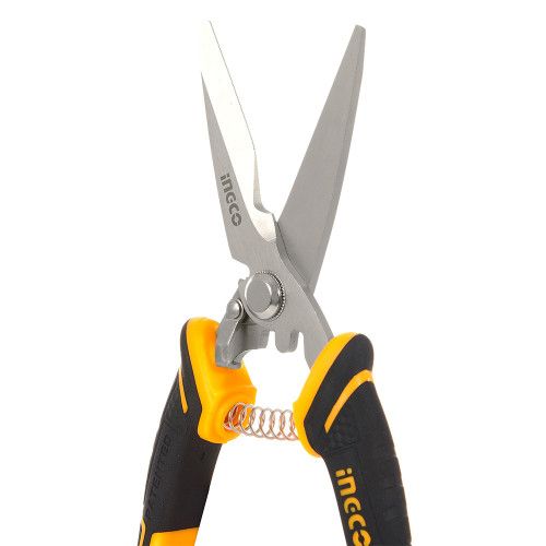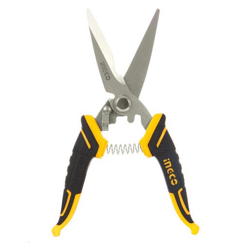 Інструментальні універсальні ножиці INGCO завдовжки 200 мм з лезами з нержавіючої сталі. Поверхня лез оброблена піскоструминно, що забезпечує високу міцність та тривалий термін служби. Ці ножиці мають широке застосування ідеальні для різних видів робіт, таких як різання паперу, картона, тканини, шкіри та інших матеріалів. Вони мають зручний ручки з достатньою довжиною для зручного захоплення і комфортної роботи. Ці ножиці відрізняються високою якістю, довговічністю та надійністю.