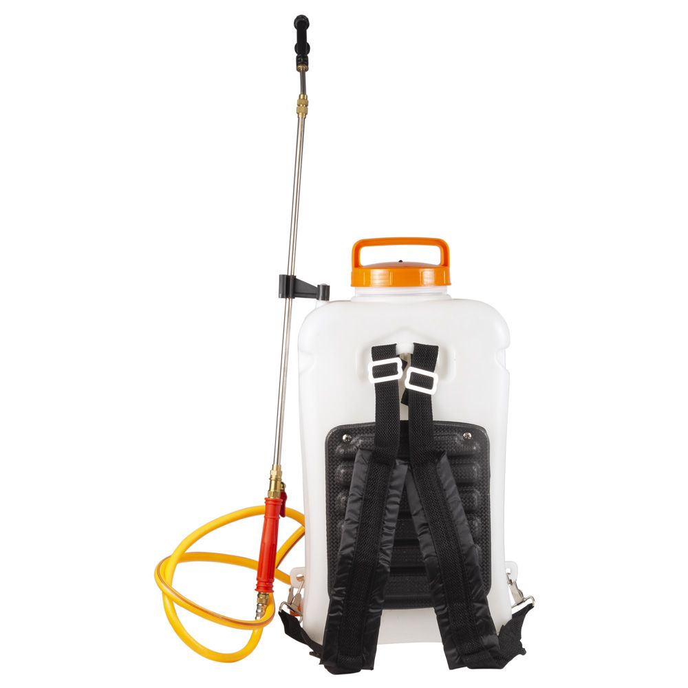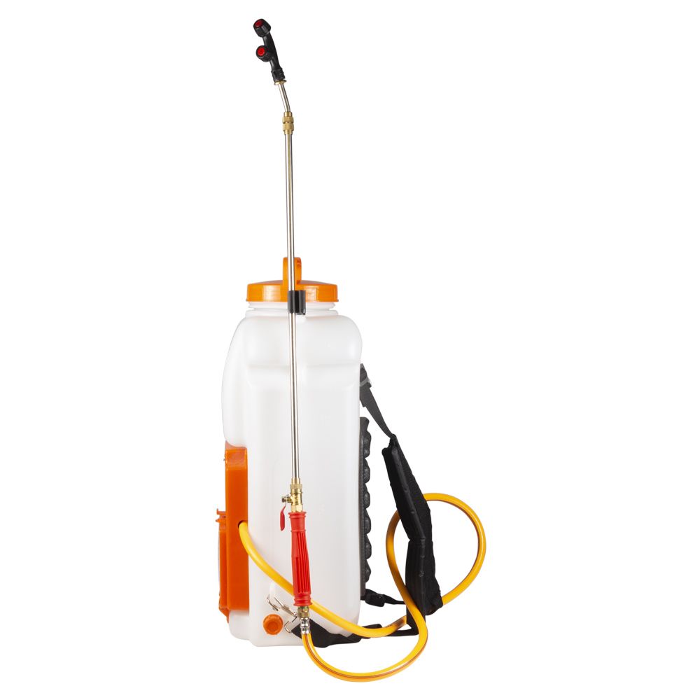 Обприскувач акумуляторний Ergo 16л FLORA (5001324) - це поливальний інвентар, зазвичай застосовується в господарстві для зрошення водою або іншою рідиною грунт. Використовують цей пристрій коли рослині потрібні поживні речовини, а джерело даних речовин відсутня. Обприскувачі призначені для обробки рослин засобами захисту, гербіцидами і рідкими добривами. Маленькі зазвичай використовуються для квітів, а великі від 3л до 15л потрібні для проведення трудомістких робіт в саду. Садові обприскувачі допоможуть не тільки позбутися від шкідників і хвороб, але і забезпечать полив квітів, що вимагають акуратного поводження.