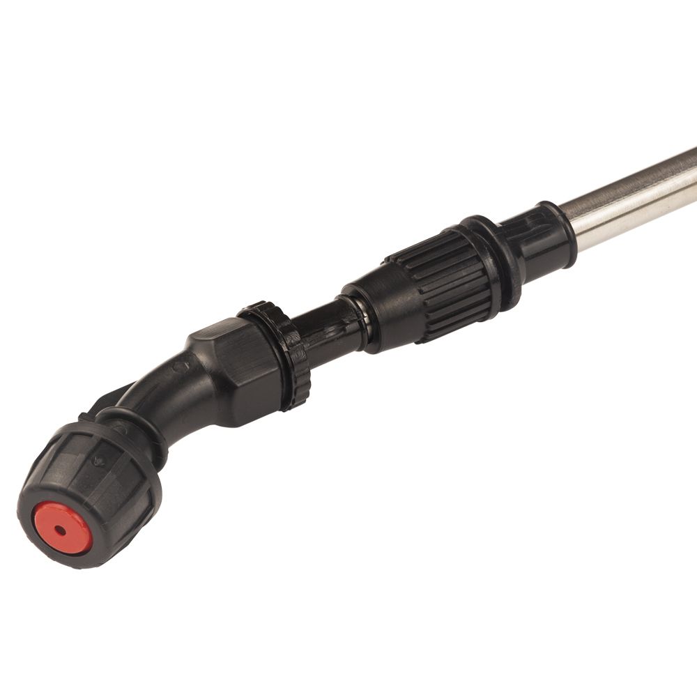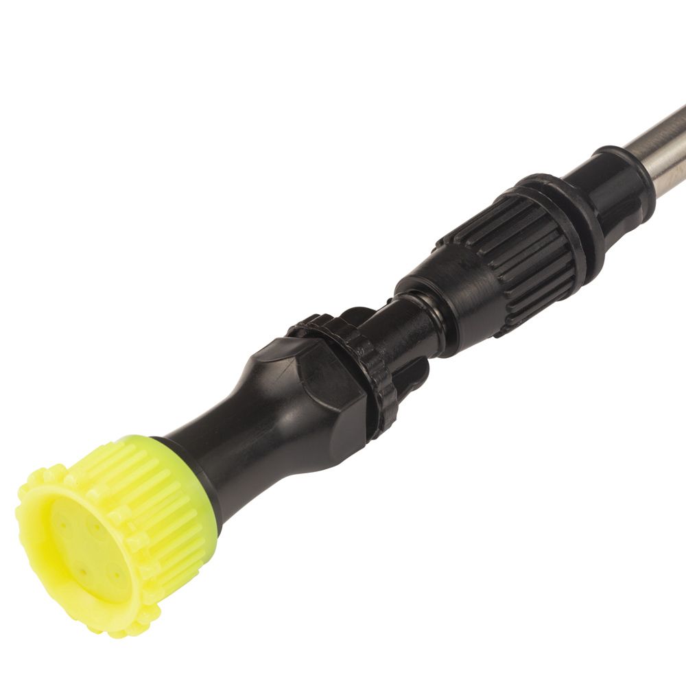 Насос створює робочий тиск до 4 бар, що дозволяє рівномірно розподіляти рідину з максимальною витратою 1,5 л/хв. Шланг довжиною 1,2 м у поєднанні з телескопічною трубкою з нержавіючої сталі (від 585 до 1000 мм) забезпечує зручність у використанні. Металевий насосний важіль із ПВХ покриттям відзначається міцністю та стійкістю до зносу.