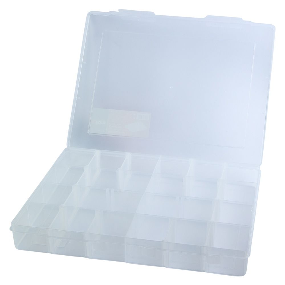Пластиковий органайзер ULTRA 7417122 з 20 відсіками розміром 350×270×50 мм призначений для впорядкованого зберігання кріплень, інструментів та дрібних деталей. Прозора кришка дозволяє швидко знаходити потрібні елементи.
