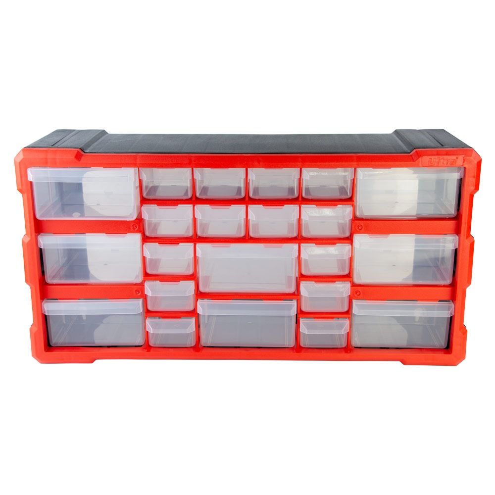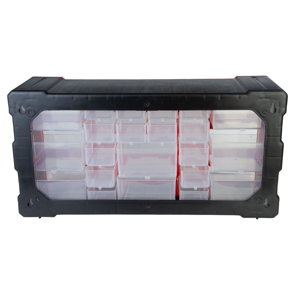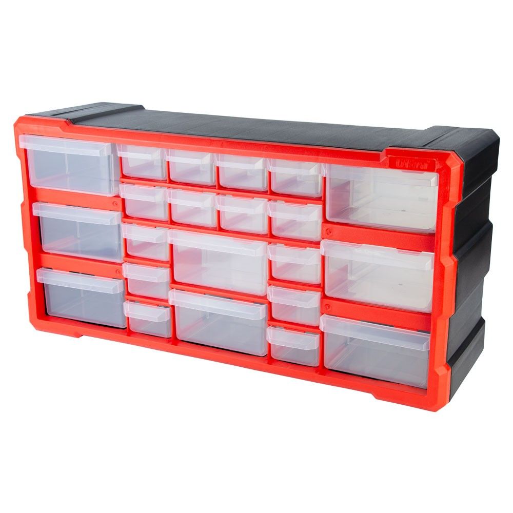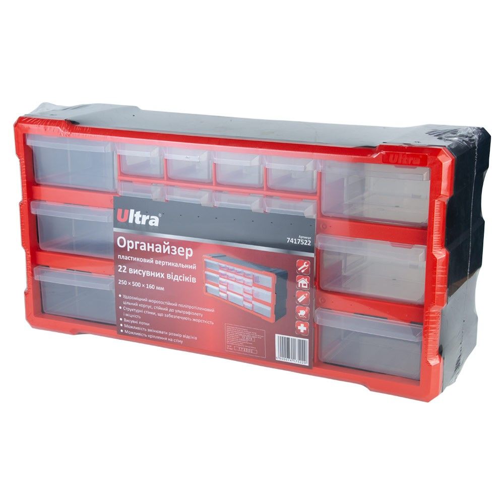 Органайзер пластиковий вертикальний ULTRA 22 відсіки 250×500×160 мм (7417522) призначений для зберігання та зручного доступу до дрібних деталей і ручного інструменту. Завдяки компактній формі й наявності 22 висувних відсіків дозволяє системно організувати кріплення, гайки, шайби та інші дрібниці.