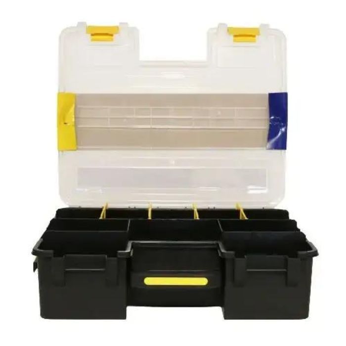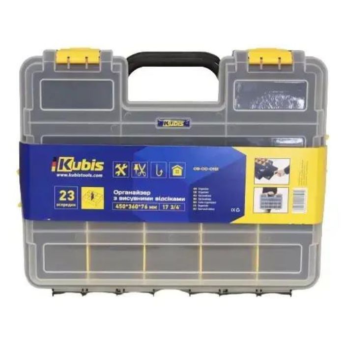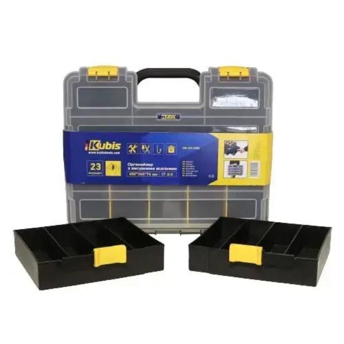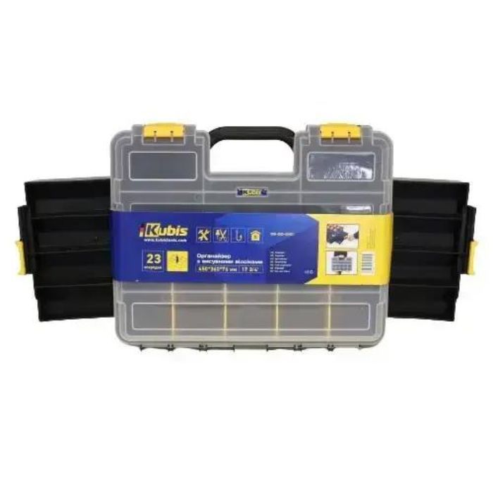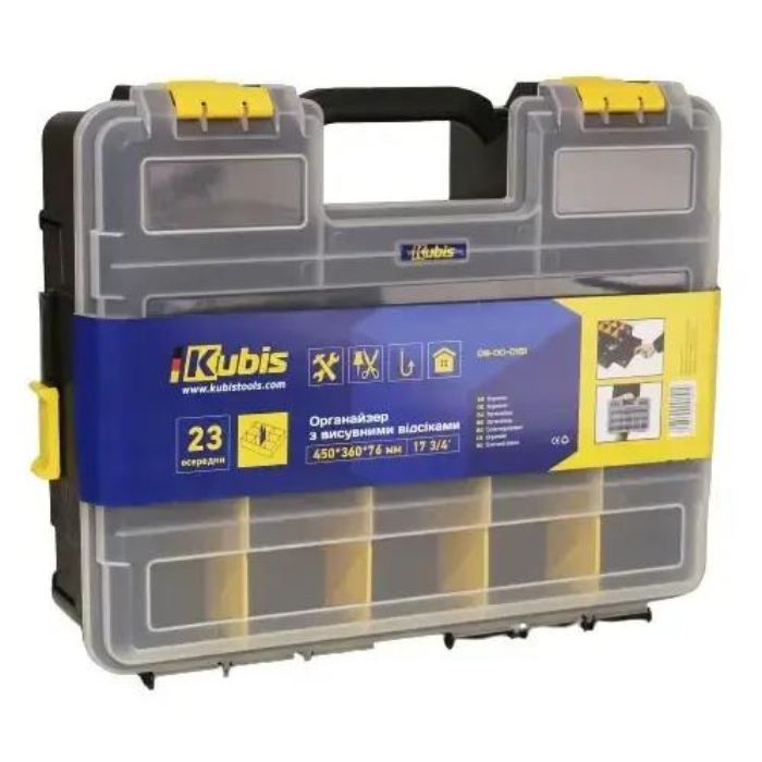 Органайзер з висувними відсіками є ідеальним рішенням для зберігання різноманітних предметів. Він має 23 відділення, що дозволяє організовано розкласти різні речі в одному місці. Завдяки посиленій конструкції, цей органайзер має високу міцність і витримує великі навантаження. Він виготовлений з якісного пластику, що забезпечує довговічність і зручність в експлуатації. Розміри органайзера складають 450 360 76 мм, що дозволяє зберігати його в компактному просторі. Цей органайзер ідеально підходить для дому, офісу чи майстерні, дозволяючи зберігати речі в порядку і легко знайти потрібні предмети. Додаткові особливості органайзера включають його легку вагу, стійкість до ударів і міцність, що робить його незамінним помічником у повсякденному житті.