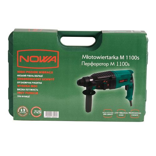 Перфоратор NOWA M 1100s має ряд переваг, які роблять його незамінним інструментом: потужність 1100 Вт забезпечує достатню силу для виконання різних завдань; сила удару 3,9 Дж дозволяє швидко і ефективно свердлити отвори в твердих матеріалах; тип патрона SDS-plus дозволяє швидко змінювати свердла і бури; максимальна швидкість обертання 0–1150 об/хв дозволяє контролювати швидкість роботи; легка вага 3,02 кг робить його зручним у використанні; висока якість виконання гарантує надійність і довговічність.