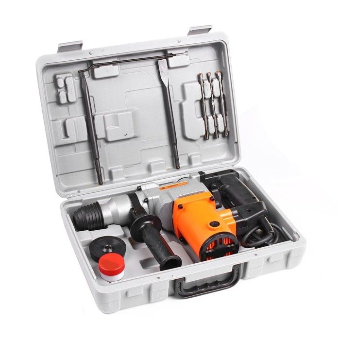 Комплект поставки включає додаткові насадки і пристосування для різноманітних видів робіт. Даний перфоратор має захисну систему від перевантажень та вбудований противідкручувальний механізм для безпечної роботи.