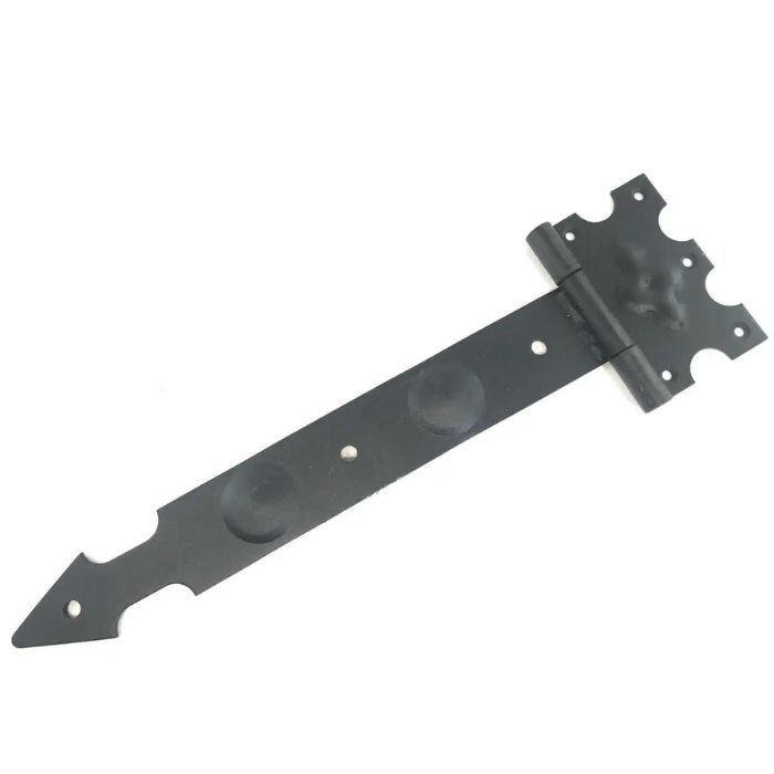 Петля Декоративна "Стріла "350" - це високоякісна накладна петля з універсальною стороною відкриття, яка виготовлена зі сталі та пофарбована в чорний колір. Завдяки своїм компактним розмірам - висотою 350 мм та шириною 50 мм, петля легка у використанні і ідеально підходить для встановлення на двері будь-якого типу. Цей аксесуар стане чудовим доповненням до вашого дизайну, створюючи елегантний і стильний вигляд. Використовується для кріплення дверних полотен або меблевих виробів.