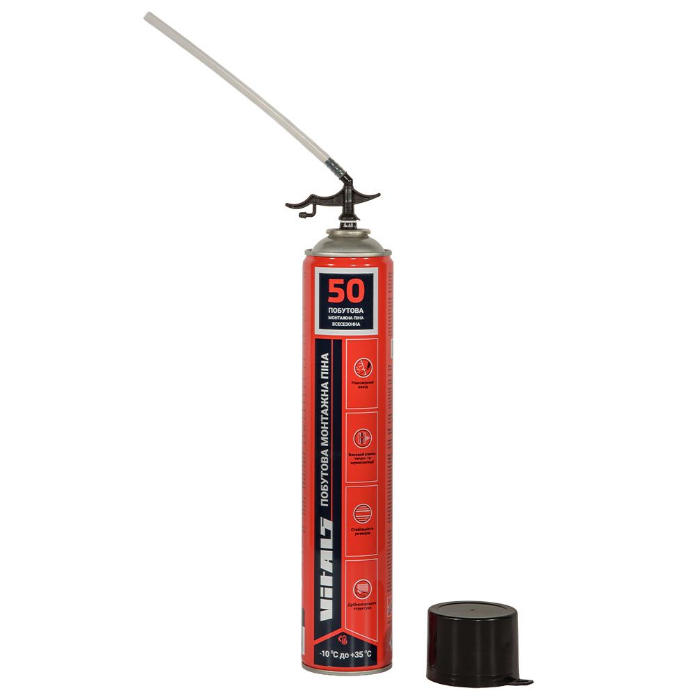 Монтажна піна Vitals Fix всесезонна (балон 750 мл) із трубочкою — однокомпонентна поліуретанова піна для побутового застосування. Має високий вихід до 50 літрів і забезпечує якісну тепло- та звукоізоляцію стиків і пустот.