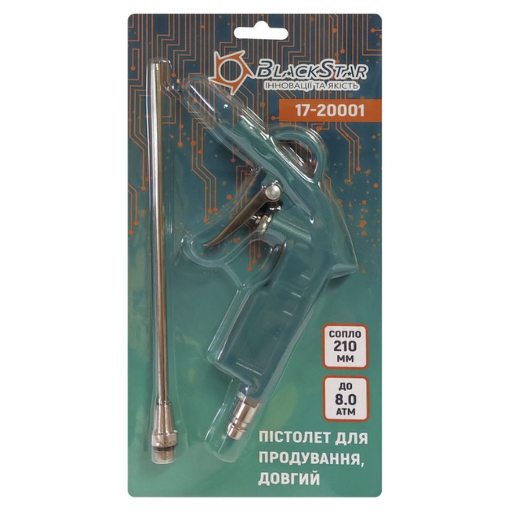 Продувний пістолет працює від стисненого повітря під тиском 1–8 атм та призначений для очищення, продування й видалення забруднень у різних сферах. Використовується в цехах, майстернях та автосервісах.