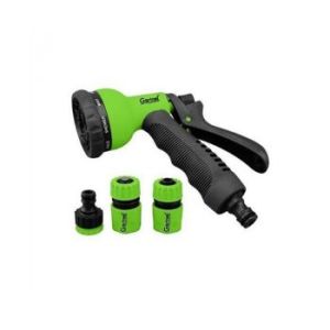матеріал – пластик;кількість режимів роботи - 8 режимів (сильний струмінь, слабкий струмінь, плоский струмінь, конус, центр, душ, аерування, вертикальний полив).Комплектація:пістолет розпилювач;адаптер для крана 1/2" – 3/4";конектори для шланга 1/2" - 2шт.