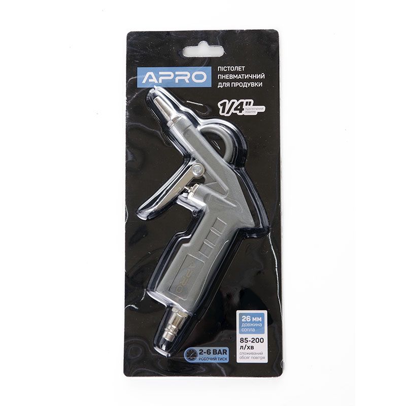 Переваги пневмопістолета продувного короткого: - Компактний розмір забезпечує зручне утримання і здійснення робіт навіть в узких місцях. - Висока потужність потоку повітря дозволяє ефективно очищати поверхні від забруднень. - Металевий корпус забезпечує довговічність і надійність інструменту.