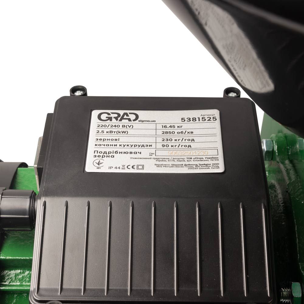 Подрібнювач зерна 2.5кВт до 230 кг/год зернові, початки GRAD (5381525) призначений для подрібнення зерна та качанів кукурудзи у домашньому птахівництві та тваринництві.