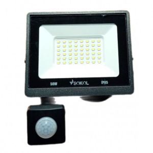 Світлодіодний прожектор Sokol LED-SLT 50W із датчиком руху (IP65, 6500K) — енергоефективне рішення для зовнішнього освітлення фасадів, паркувань, рекламних конструкцій та ландшафту. Завдяки потужності 50 Вт і світловому потоку 3500 Лм забезпечує яскраве холодне світло з температурою 6500K та широким кутом освітлення 120°.