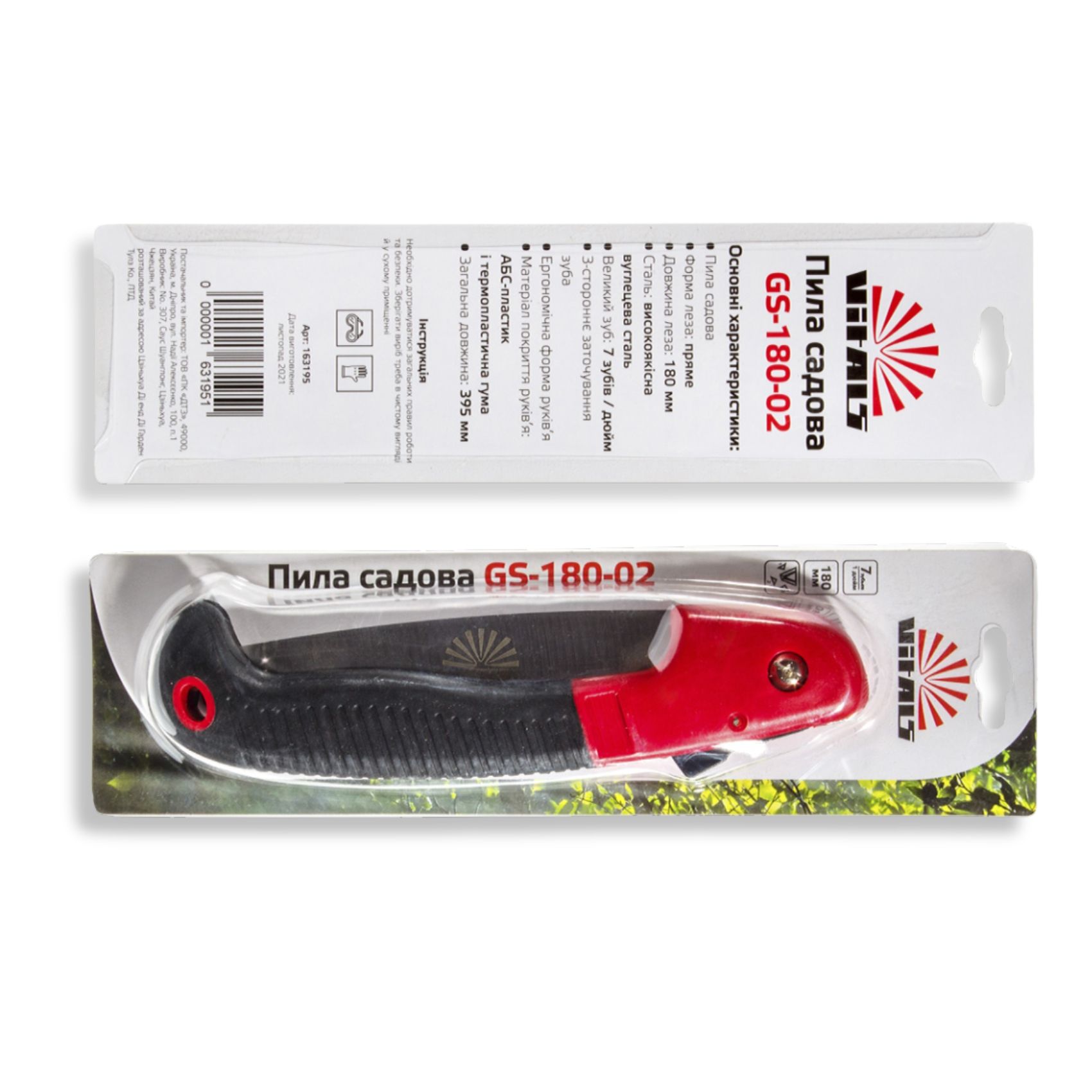 Пила садова Vitals GS-180-02 – зручний, надійний інструмент. Незамінна у домашньому чи дачному саду. Ідеально підходить для обрізки непотрібних, хворих гілок. Лезо довжиною 180 мм щільно прилягає до гілки і не ушкоджує довколишні тканини.